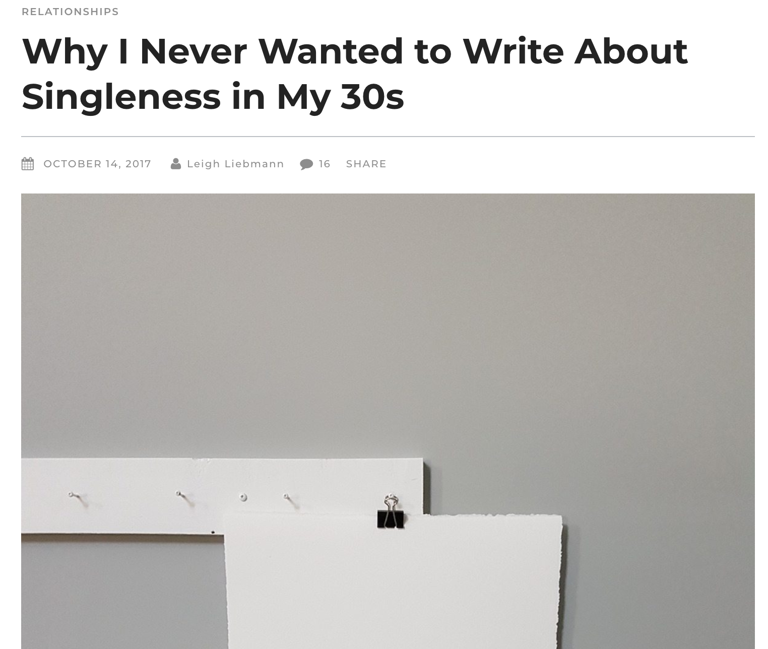 Darling Magazine: Web Article, 2017, Why I Never Wanted to Write About Singleness in My 30's